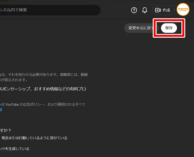 そのため、YouTubeのガイドラインに沿って、動画投稿時に「有料プロモーション設定」を行うことをおすすめしています。