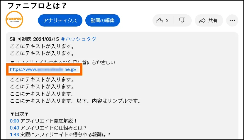 - YouTube Studio-説明にリンクを貼る